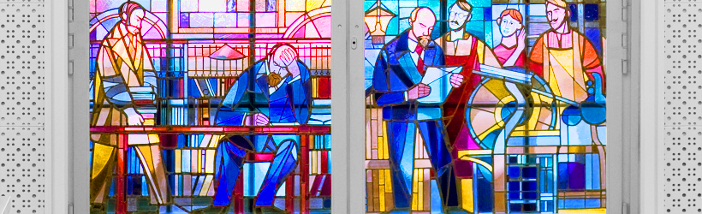 Mittelfenster („Keninfenster“) des großen Lesesaals der Königlichen Bibliothek („Kommode“) am Bebelplatz (bearbeiteter Ausschnitt eines Fotos von Matthias Heyde, https://bauten.hu-berlin.de/de/grimm/media_kontakt_und_information/bilderservice/humboldt-universitaet-zu-berlin-universitaetsbibliothek-zwb-rewi-leninfenster)